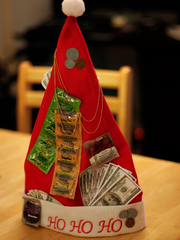 Last night, we trudged out in the rain and had our annual Christmas party with all of our friends. It was such a great evening. Lots of food, lots of laughs, silly santa hats and a gift exchange. I think we’ve been doing these parties since 2006, so its really become a fun tradition. It was the first time this holiday season where I have felt like Christmas was upon us. Its been a little harder getting in the spirit this year because I haven’t decorated the house and I did most of my shopping online to avoid waddling through the crowded stores. Plus we don’t really have any plans for the holiday. So it was really nice to put on a little glitter and sit near a Christmas tree. I wish I had some pictures, but (GASP!) my camera is a little broken right now. Grrr…